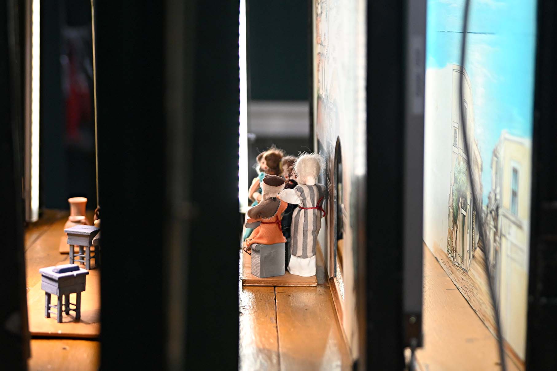 Alle Gegenstände auf der Bühne entsprechen einem einheitlichen Maßstab (1:10) und so entsteht – sobald das Auge der Betrachter im Dunkel des Zuschauerraums die Relationen zu anderen Gegenständen im Raum verloren hat – eine in sich stimmige Welt, die zuweilen größer scheinen will, als sie tatsächlich ist.